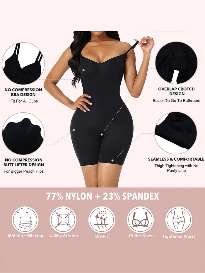 This seamless full body shape-wear is designed with comfort-stretching and seamless knitting for maximum comfort. It features adjustable straps and is highly breathable, allowing for flexible movement and compression. It also gives you extra support for your breasts with or without a bra, and helps to target the belly and thighs, eliminating creasing and dents.